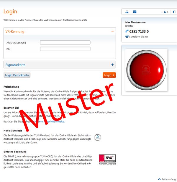 An dieser Stelle sehen Sie nur eine beispielhafte Anmutung der Einstiegsseite in den Banking-Bereich.